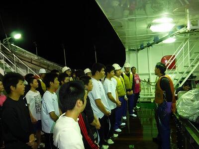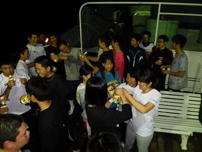 揚縄終了後、プロムナードデッキでジュースで乾杯!!