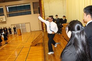 離任される先生の挨拶では、体育の先生が海洋高校にエールを送ってくださいました。