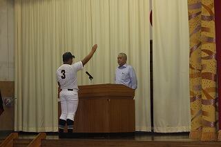 野球部主将の宮下君は「支えてくれる周りの人への感謝の気持ちを忘れず、プレしたい」と選手宣誓しました。第1試合は西都商業高校との対戦です。