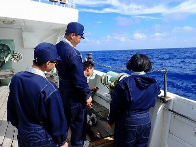 東寄りに進むにつれて風や波も落ち着き、実習生の船酔いは確実に減っています。