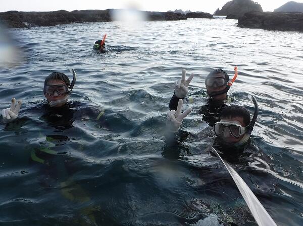 心配していた天候も良くなり、気温・水温ともに好条件での実習となりました。