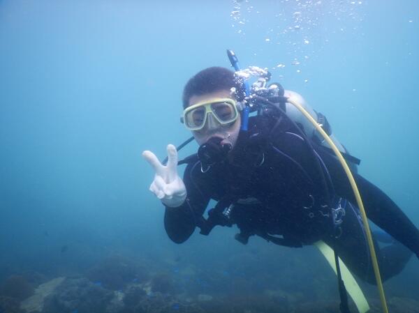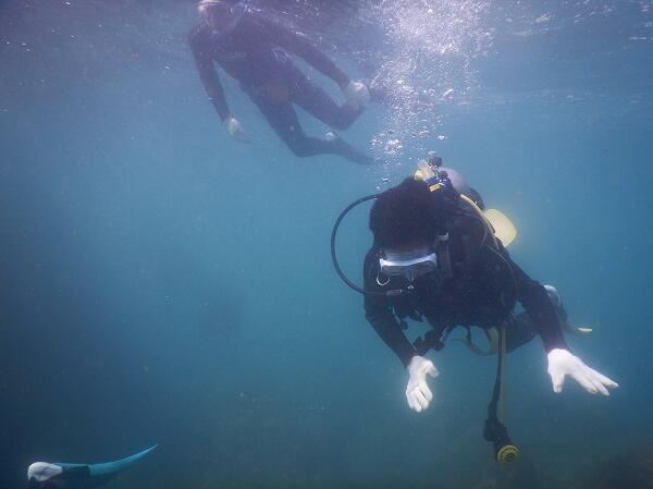 生徒は練習してきた知識と技術を生かしダイビング実習を楽しんでいました。
