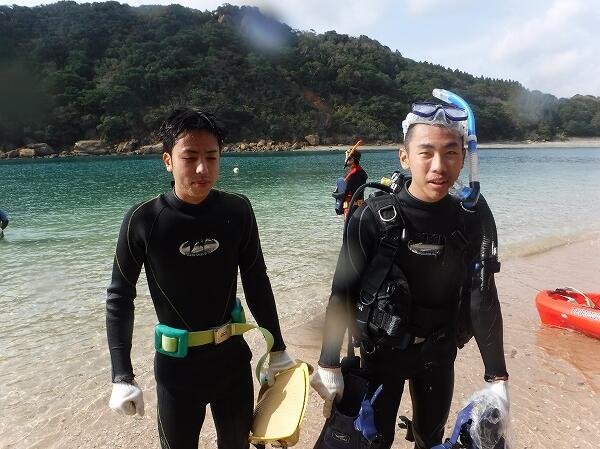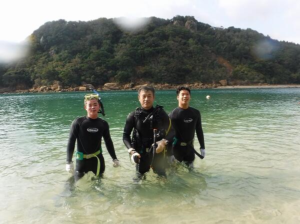 12月6日に、3年B組海洋機器類型の生徒が日南市栄松でダイビング実習を行いました。