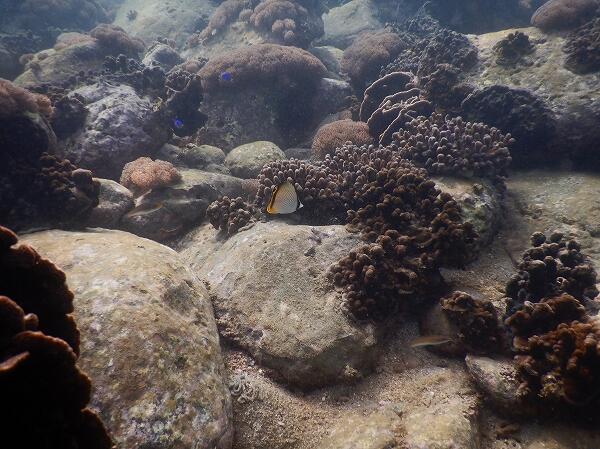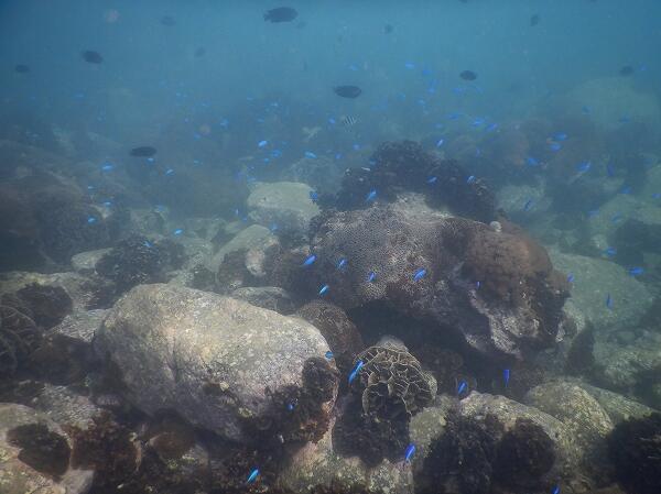 前日の夜に降った雨の影響で少し濁りはありましたが、魚、珊瑚も綺麗に見えました。