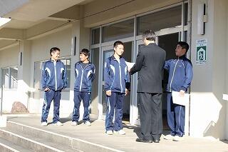 また、在校生代表挨拶をした生徒会役員の辻君は「今は期待よりも不安の方が多いかもしれませんが、指導教官や乗組員の方々が丁寧に指導してくださるので安心してください。3月にたくましく成長した皆さんに会えるのを楽しみにしています。」と9月から行われた第一次長期乗船実習の経験をもとに激励しました。