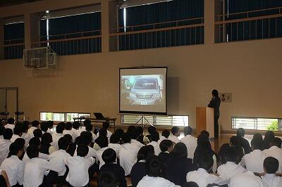 わかりやすく臨場感溢れる映像を交えた説明に、生徒達も真剣に聞き入っていました。