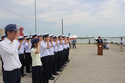 出港式では、実習生達は初めての船での生活に期待と不安が入り交じった表情をしていました。
