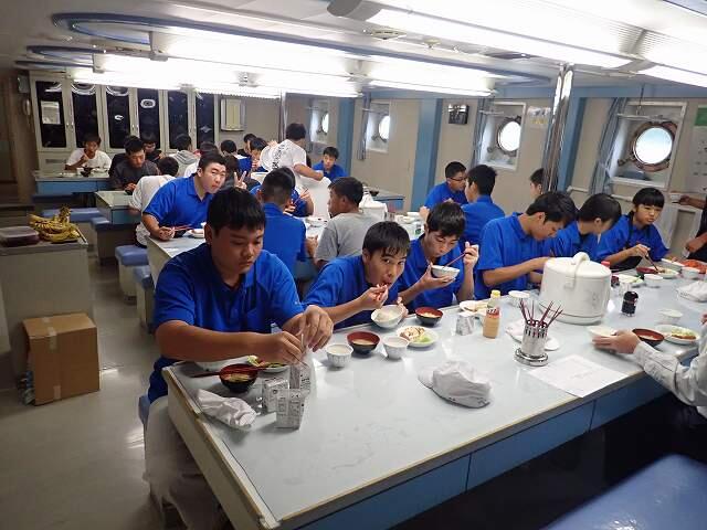 大半の実習生は船酔い状態となりましたが、海の通過儀礼に耐えて奮闘中です。
