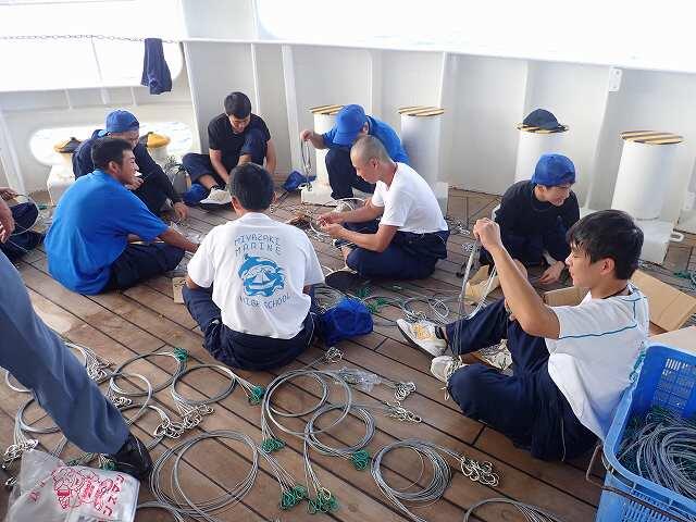 実習生は計画通りの当直と漁具作成作業に取り組んでいます。