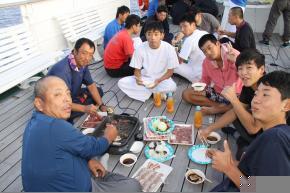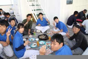 昨夜の実習生歓迎BBQは最後の船酔い1名も体調良く出席し、盛会でした。