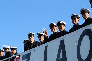 涙を流しながら、進洋丸が見えなくなるまで手を振り続ける保護者の方々。
