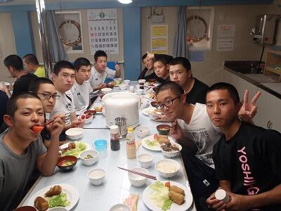 実習生は夕食前の自由時間にそれぞれ筋トレを始めました。