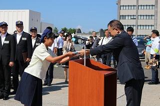 実習生代表の長田君は、「73日間の洋上実習の様々な困難を、級友とともに乗り越え、大きく成長して帰ってきます」と挨拶をしました。