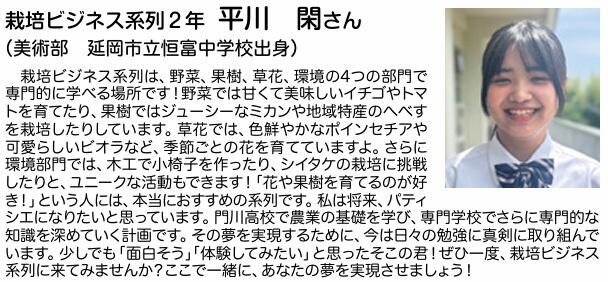 【就職】宮崎チキンフーズ、耳川広域森林組合、ひむか野菜工房、敷島製パン、太田商事、マルイチ、黒瀬水産、日向市農業協同組合、中国木材、日向屋、旭化成、旭有機材、安井、東郷メディキット、陸上自衛隊