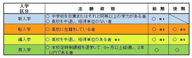 ※3:修得単位がない場合は、編入学試験は受験できません。修得単位の有無については、以前通っていた学校に確認をしてください。