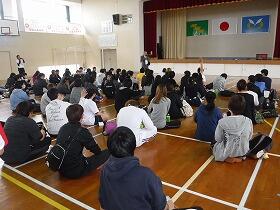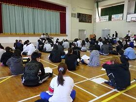 例年は外部から講師を体育館に招いて開催していますが、新型コロナウイルス感染症対応のため、リモートで実施しました。