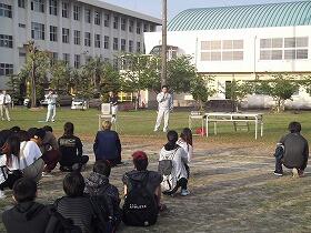 10月10日(木)本校定時制課程の防災訓練(火災)が行われました。出火を想定し火元確認・通報訓練・避難放送を行った後、生徒・職員は各教室から本校グラウンドに避難しました。避難後は延岡市消防本部の方から講評と講話をいただくとともに、水消火器を使った初期消火訓練の指導を受けました。消火器の扱い方について全体で説明を受けた後、生徒と職員が代表して演習を行いました。今回の訓練で、火災に対する備えや身の安全を守る方法、初期消火の方法について知識を深めることができました。