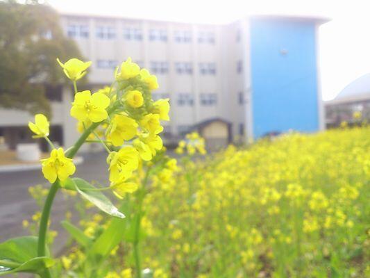 まだ朝晩の冷え込みはありますが、校門の菜の花は満開です。