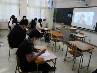 例年は外部から講師を体育館に招いて開催していますが、新型コロナウイルス感染症対応のため、リモートで実施しました。