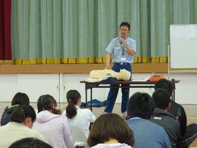 消防局の方の「もし身近な人が、倒れたとき、すぐ対応できる方法を普段から練習しておくのが、回復への早道なんですよ」との体験談を聞き、身を引き締めて練習しました。