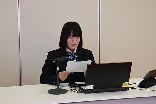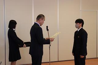 また、北郷町の電車の踏切故障に伴い、車やバスの誘導を約1時間行ったことで、JRからの感謝状を頂いた1年商業マネジメント科の河野さん、永山さんの表彰を行いました。