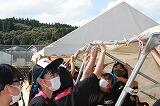 午前中は3年生がテント設営と団技の練習をしました。男女とも真剣でした。