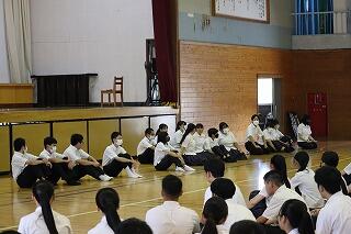 高文祭壮行式 投稿日時 : 2023/09/15 広報5 9月23日から都城市で行われる高校総合文化祭に出場する部活動や生徒会の壮行式が行われました。 文化部生徒にとって年に1回のとても大きな行事です。競技だけでなく、交流など多くの分野がありますが、それぞれの分野でしっかり活躍してくれると思います。
