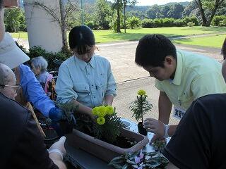 福祉科1年生と2年生は、10/23~11/1まで、地域の福祉施設で実習中です。 「特別養護老人ホームゆうゆうの森」と「養護老人ホーム恵老園」の2施設で、利用者さんと花植えの交流をしました。その前準備として、8月の下旬に地域農業科の先生方に教わりながら、福祉科2年生が花の種を植えました。