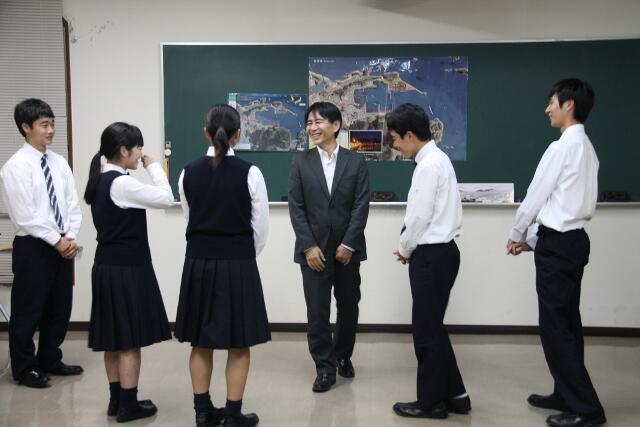 10月28日 油津港湾事務所にて、国土交通省 九州地方整備局 小平田浩司局長と2年経営情報科の生徒5名による会談が行われました。