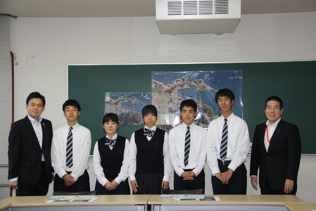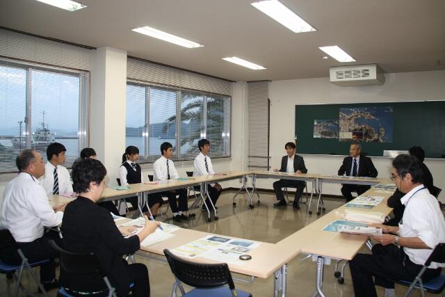 10月28日 油津港湾事務所にて、国土交通省 九州地方整備局 小平田浩司局長と2年経営情報科の生徒5名による会談が行われました。