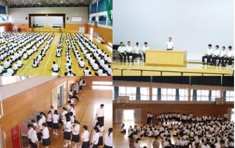 学校長講話、生徒会長の話もあり、暑い中でしたが、生徒達も真剣に話を聞いていました。