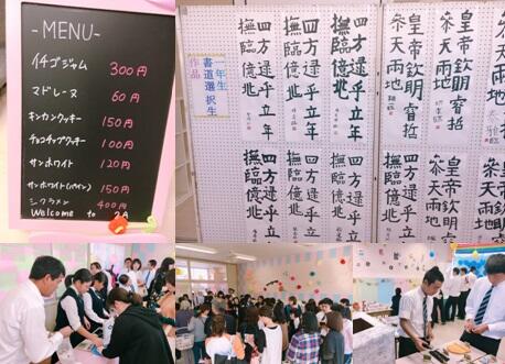 振徳祭1日目 投稿日時 : 2018/10/19 広報02 待ちに待った、振徳祭がいよいよスタートしました。生徒会が工夫を凝らしたオープニングによってはじまりました。午前中は、英語弁論発表や、1年生による合唱が行われました。午後からは、各学科やPTAによるバザー、2年生が中心となって展示が行われました。また、部活動による趣向を凝らした展示も行われ、人だかりができていました。