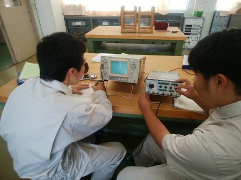 電気科2年実習 投稿日時 : 2018/10/25 広報02 今日は、電気科2年生の実習です。このグループでは、オシロスコープを使って、波形観測の仕方を学んでいました。初めての測定器ということで、慎重に取組んでいました。