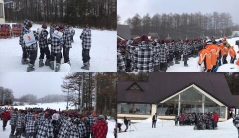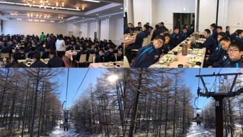 スキー場のホテルでは、スキーウェアに着替えて、まずは昼食です。