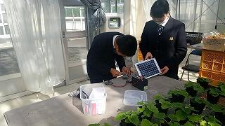 電子工作では、班ごとに本校のビニールハウスに実験機器を設置して
