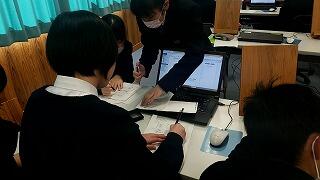 パソコン操作に経験のある生徒が教えるなど、学年や学科を越えて意欲的に学習しています。