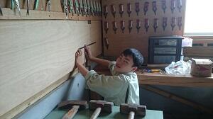 授業が開始される前に、出勤簿に押印、帳簿や備品の準備、今日一日どんな作業をするのかペアで確認、業務日誌の作成等を行います。