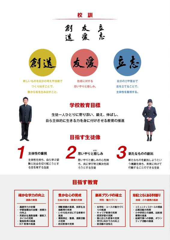 本校は、「立志」「友愛」「創造」の校訓のもと、全職員で「生徒一人一人に寄り添い、鍛え、伸ばす」学校として、伝統校にふさわしい「心ある教育」に取り組んでおります。妻高校の今後にご期待いただき、生徒たちにあたたかいエールをお送りください。