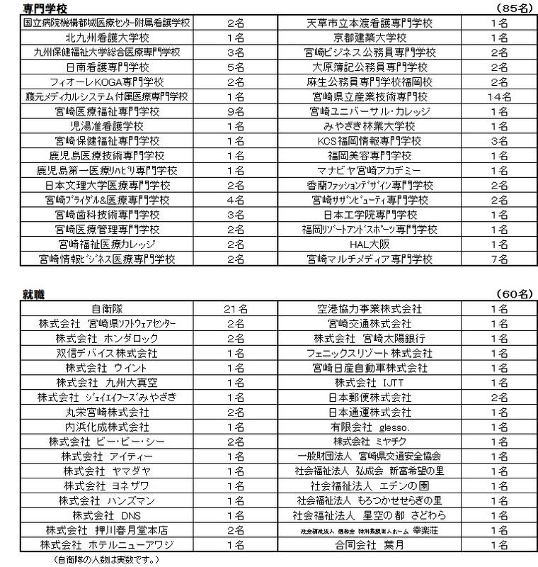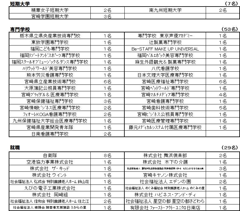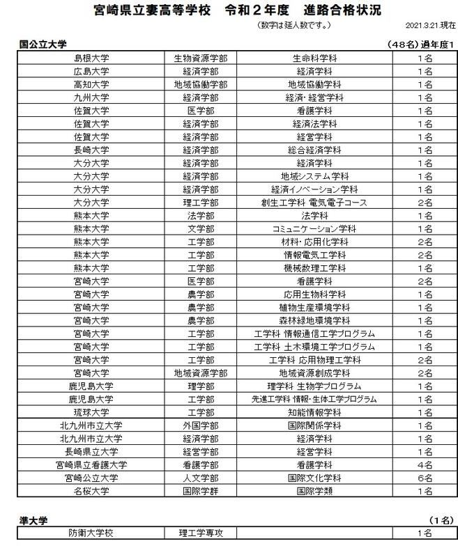 2020年度(令和2年度/新妻高元年度生)進路状況