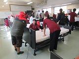 また、福祉科ではベッドメーキングの体験を実施しました。シーツの扱い方や整え方を高校生が丁寧に説明し、思いやりや気配りの大切さを感じてもらう時間となりました。