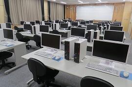 本年度より情報ビジネスフロンティア科2年生でコース制が始動し、複数のコースに分かれての授業が実施されます。プレゼンテーションルーム・プログラミング室は、それらの授業にも対応できるよう、パーティションで仕切れるようになっています。