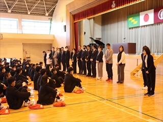 新任式では、教頭先生を始め17名の先生を迎えました。授業だけではなく多くの場面で関わりを築いていきたいです。