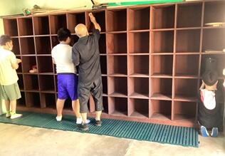 前日には更衣室の棚をみんなで掃除し、大切に使う心も学びました。