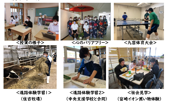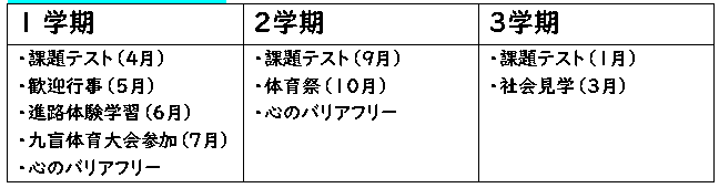 基礎学力の向上をめざし、個々の見え方に応じた学習指導を行います。卒業後を見据え、「自立活動」を中心に生活スキルの向上や豊かな心、社会性を育み、一人一人に応じた進路指導を行います。