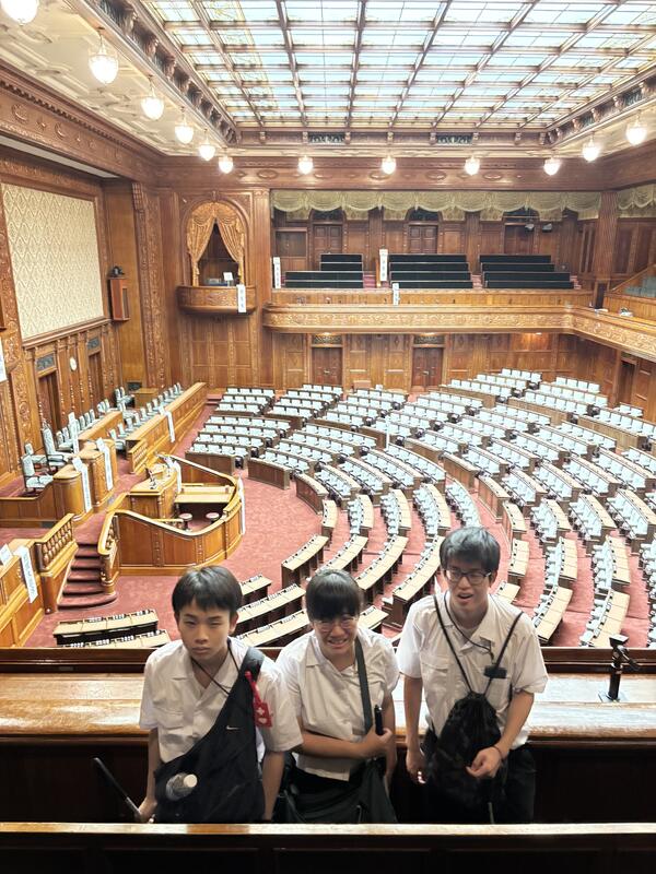 写真は、衆議院本会議場の中を見学している様子のようです。テレビでしか見ることのない景色です。貴重な経験ができたのではないでしょうか。