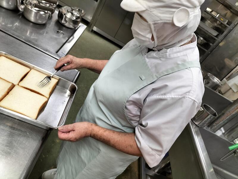 フレンチトーストはふわふわとしたやわらかい食感になるように厨房で1枚1枚、丁寧に焼き上げました。