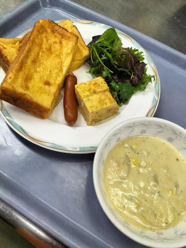 本校寄宿舎の朝食は、月2回パンの朝食があります。