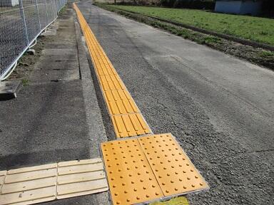 寄宿舎西側の市道の視覚誘導表示修繕工事が始まりました。