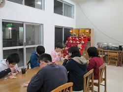 節分行事が行われました。職員と男子舎生が鬼に扮し、全員で「鬼は外、福は内」と声を上げながら、今年1年の無病息災を祈り、豆をまきました。たいへん盛り上がりました。その後は、豆を食べながら皆で楽しく茶話会を行いました。今回の節分は中高部生が計画し、準備や当日の係など行事がスムーズに進行できるよう頑張ってくれました。