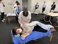 今回参加した生徒は専攻科理療科1名、専攻科保健理療科1名の計2名。施術は前半と後半の2回に分けて実施しました。